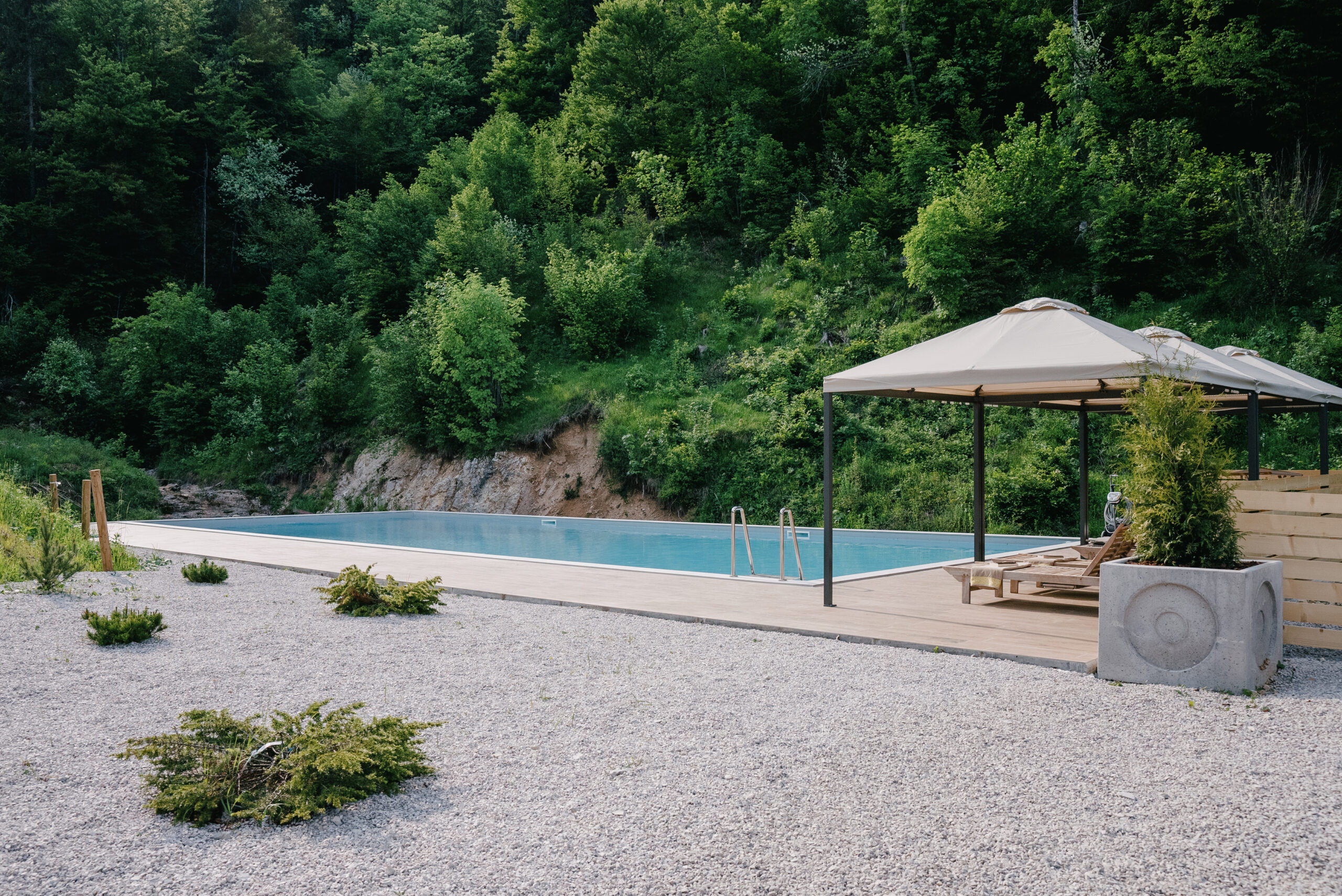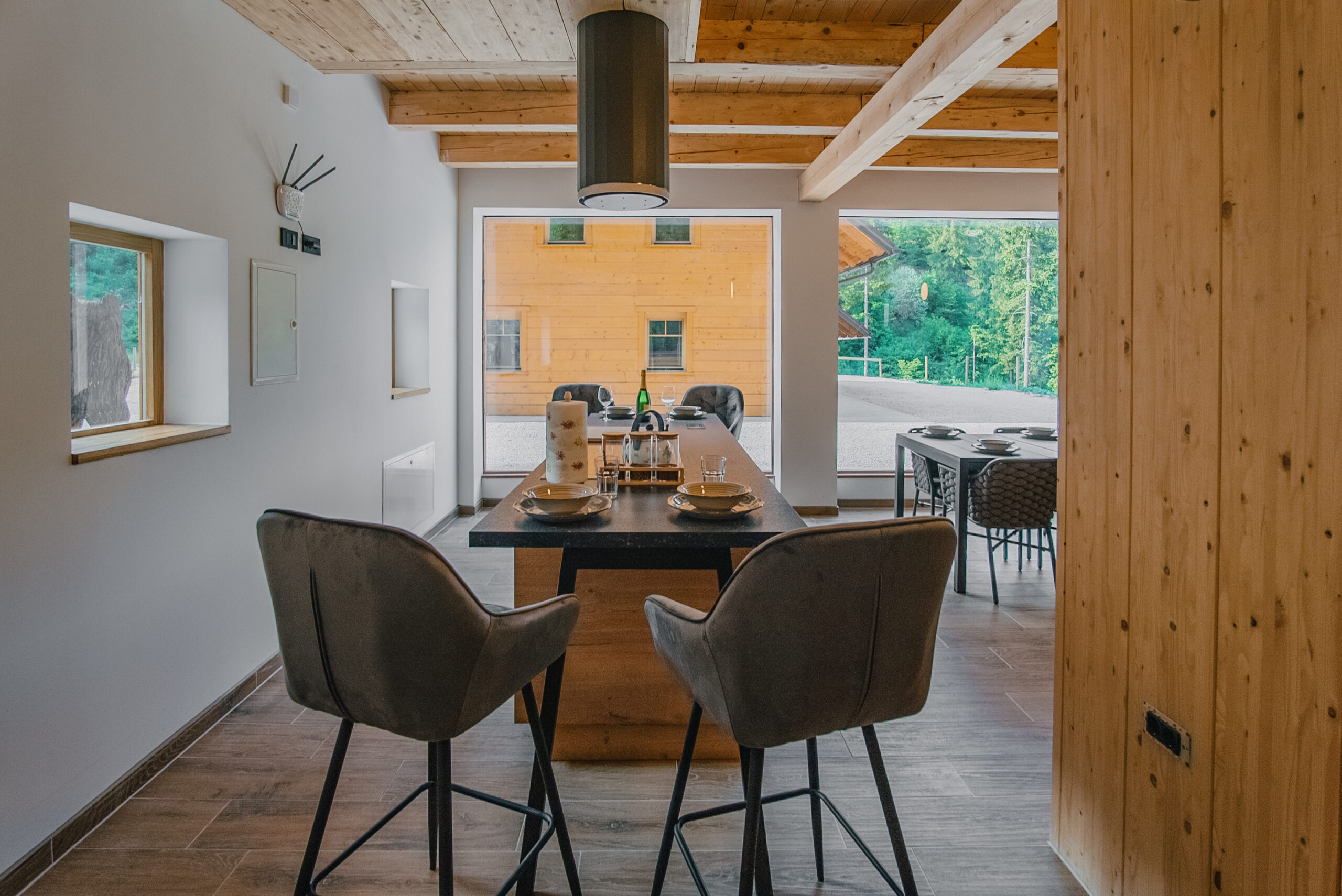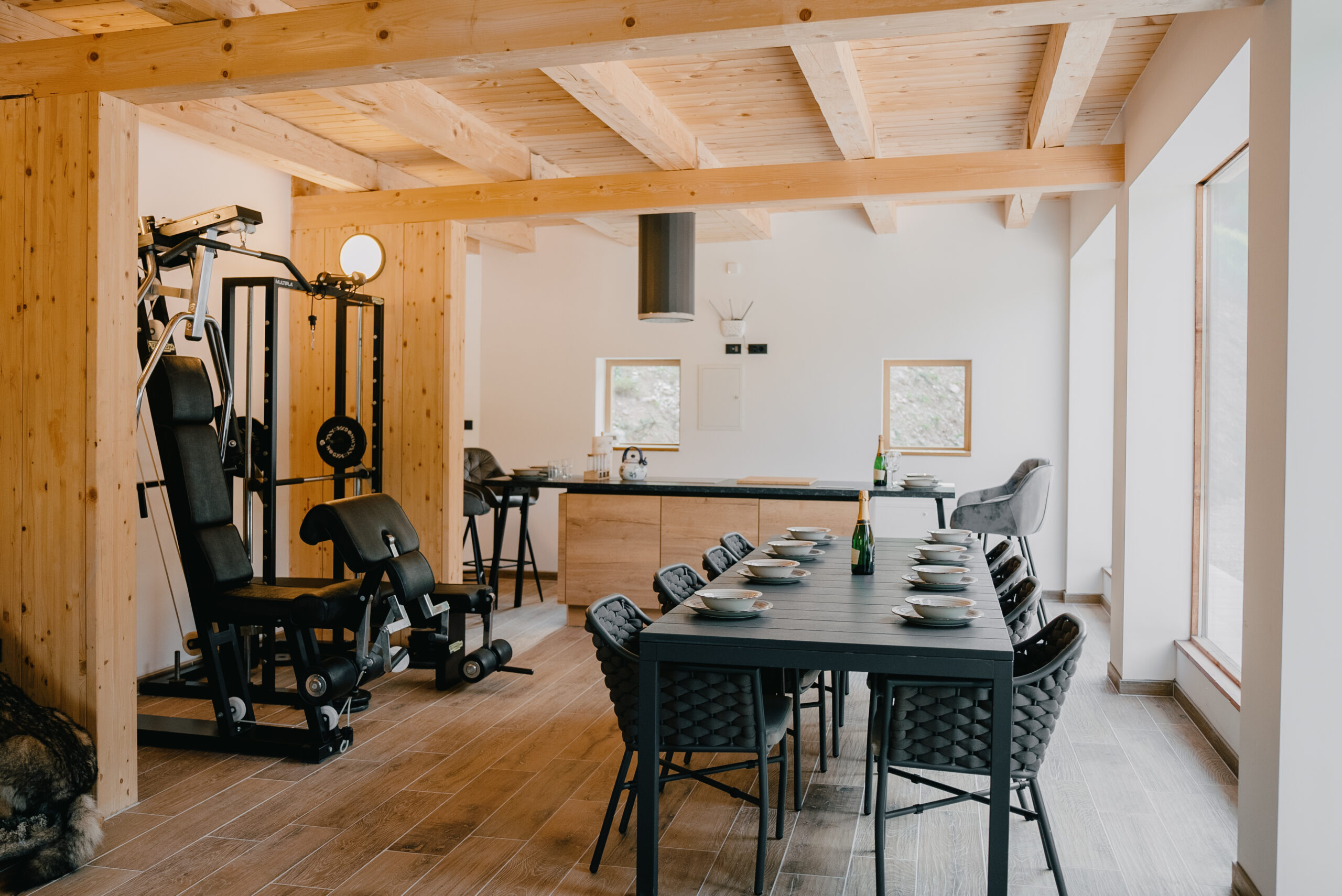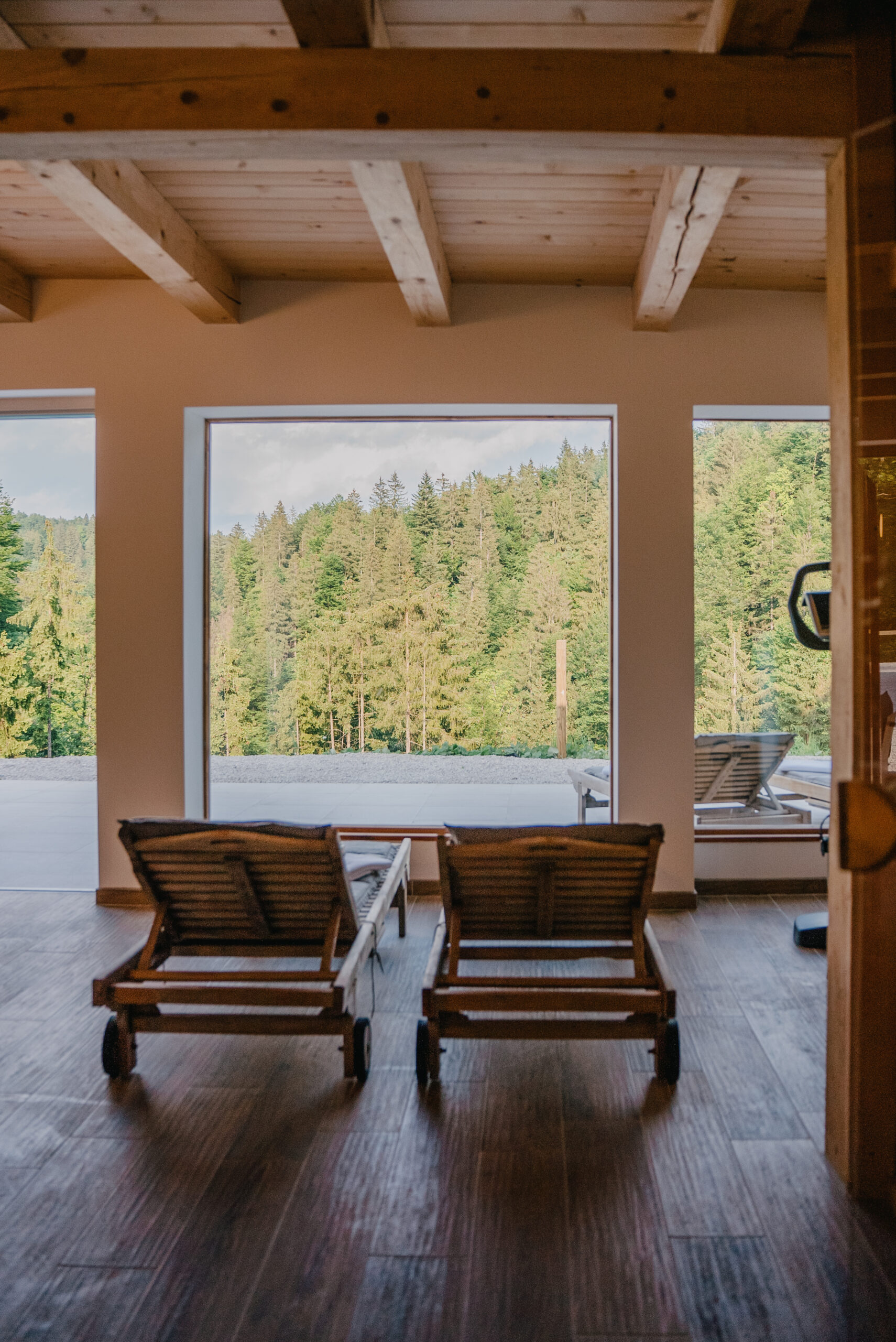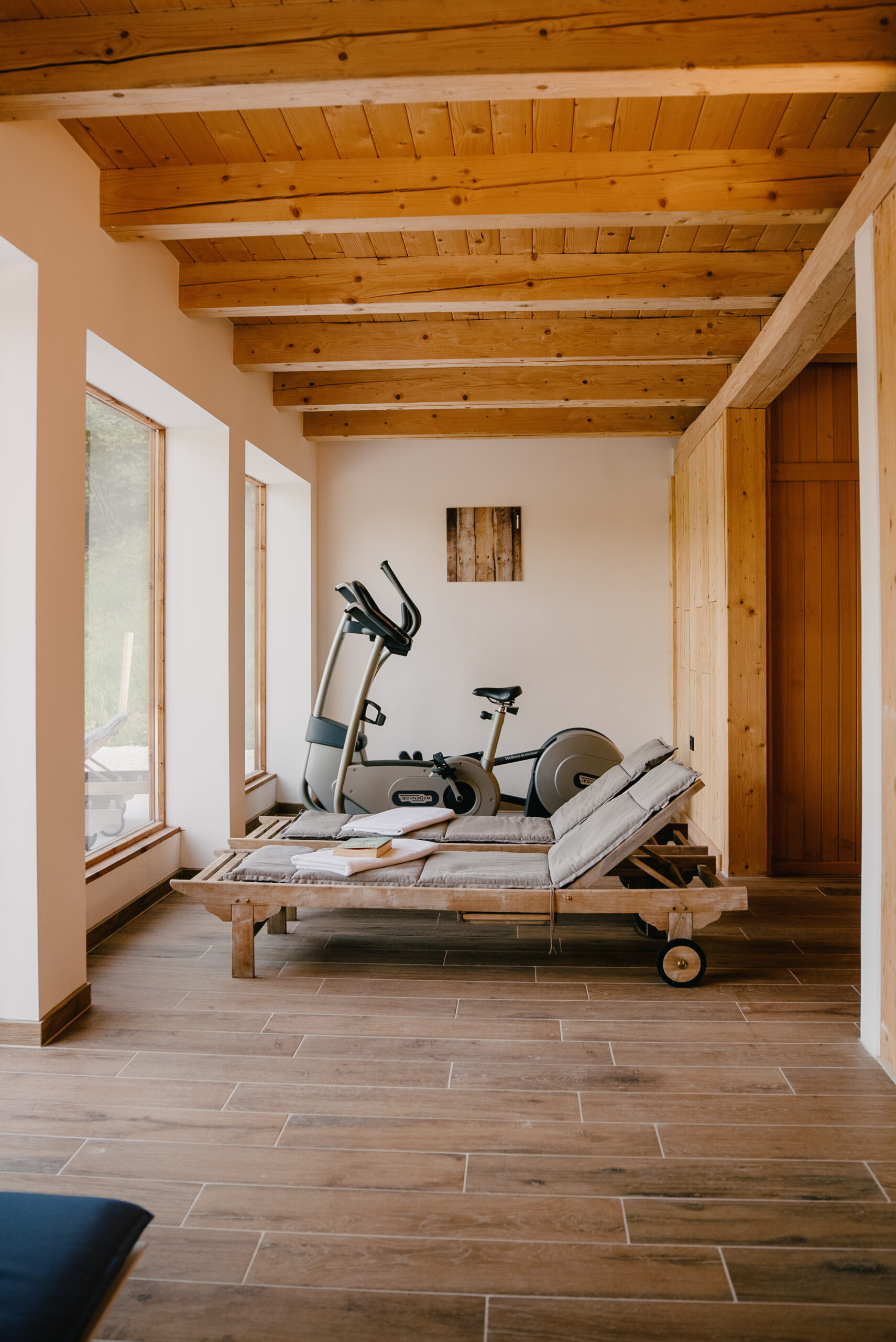 Outdoor Amenities: Guests can enjoy a swimming pool with a view, sauna, and terrace. The property features a fitness room, barbecue area, and a garden with mountain views.
